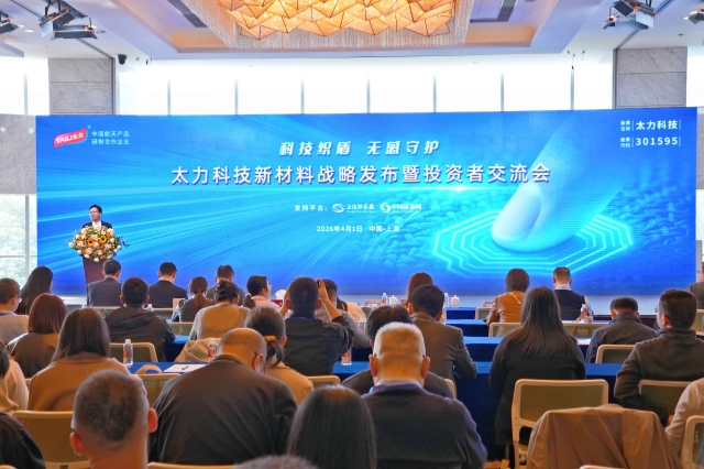 4月1日,“科技織盾 無感守護”太力科技新材料戰(zhàn)略發(fā)布暨投資者交流會在上海隆重舉行。發(fā)布會現(xiàn)場座無虛席,數(shù)百名機構和個人投資者齊聚現(xiàn)場參會,數(shù)千名各界觀眾線上觀看直播,共同見證太力新材料戰(zhàn)略升級及多款航天級新材料應用產品的重磅發(fā)布。發(fā)布會受到上海證券報、新華社、中...